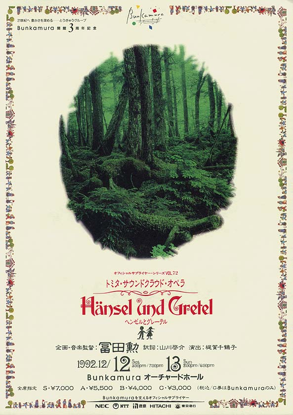 A number of 'Sound Cloud Operas' of Engelbert Humperdinck's Hansel und Gretel were held by Tomita in Bunkamura Orchard Hall, Shibuya-Ku, Tokyo, Japan from 1990 to 1992. Images provided by