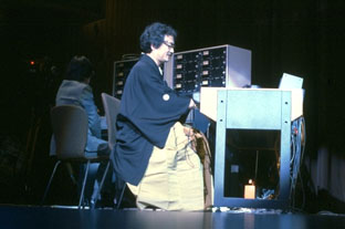 Also, the audience in the Main Hall of the Brucknerhaus will be guided through outer space by Tomita and Hays: the spectator is surrounded by music from a special five-channel pyramid system invented by Tomita. The opus starts with a homage to Anton Bruckner, with Bruckner's music symbolizing the enormous extension of outer space. Isao Tomita talks about his impressions connected with this event: